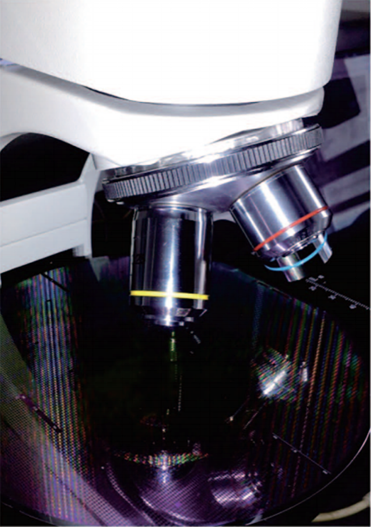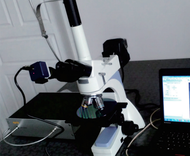 A4-SRM系列反射式膜厚测量仪可用于测量半导体镀膜等需要在很小的面积上测量膜厚的场合。通常面积可小于50um或20um。半导体需要测量silicon nitride,photoresist, polysilicon,oxide等在硅上的膜厚或silicon nitride和oxide等多层膜的厚度。我公司针对这一需求,已经推出多款满足国内半导体,半导体封装,平板显示等行业需求的小光斑显微膜厚测量仪,并已在国内多家半导体及相关厂商投入使用。我公司的小光斑显微膜厚测量仪可以配200毫米(8英寸)和300毫米(12英寸)的工作台和CCD摄像头,配有多个物镜,可使用放大倍数较小的物镜进行目标查找,然后再使用较大物镜进行测量。(如图)
